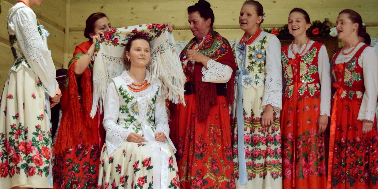 Następnie ściągano pannie młodej wieniec z głowy na znak, że nie jest już do wzięcia. Wieniec ten trafiał potem do innej dziewczyny, której miał zwiastować szybkie zamążpójście.