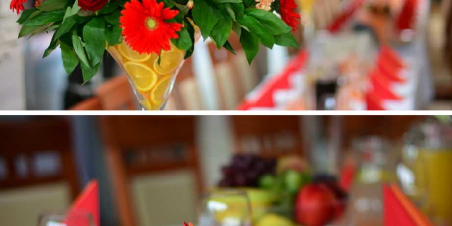Czerwony i pomarańczowy to kolory, które nie kojarzą się intuicyjnie z dekoracjami wesela. Ale kolory te potrafią stworzyć piękny i ciepły klimat dekoracji sali weselnej. Czerwień w zależności od odcienia i dodatków wykreuje doda sali wymarzonego charakteru. Ile z Was decyduje się na jesienne wesela? A może któraś z Was wybrałaby wesele zimowe zamiast tradycyjnego letniego terminu? Piszcie, podyktujmy! Jeśli planujecie datę ślubu i rozważacie termin jesiennych zajrzyjcie tutaj i poznajcie 7 powodów dla których warto wziąć ślub jesienią. W tradycyjnej palecie znajdziecie kolor czerwony wypełniony dodatkami w kolorach żółtym, pomarańczowym i zielonym. W tym przypadku wykorzystałam gerbery i róże. Serwetki oraz elementy owoców dodały dekoracjom lekkości. Jeśli ominęliście moje ostatnie odcinki videobloga ślubnego zachęcam do oglądania poradnika ślubnego.